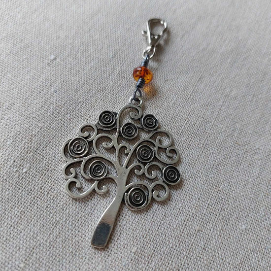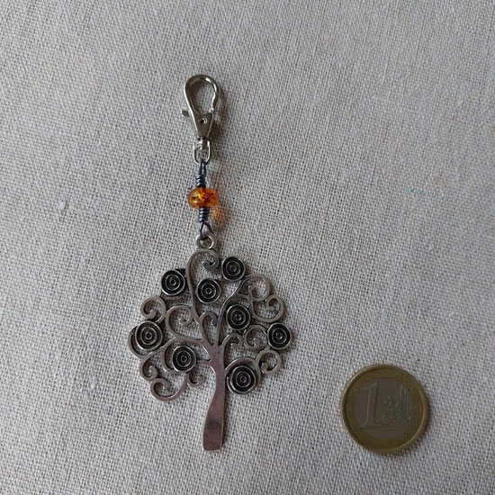 Magnifique bijou de sac figurant une breloque en métal argenté formant un arbre de vie..