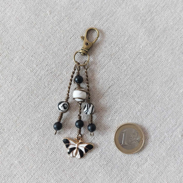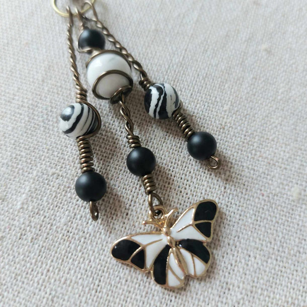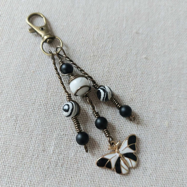 Bijou de sac papillon noir et blanc pierres naturelles fait main l'Arche de Jessica