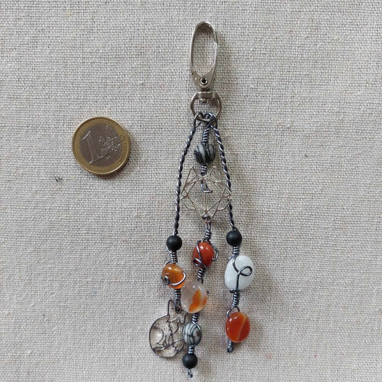 Bijou de sac renards origami jaspe onyx cornaline blanche et orange fait main l' arche de Jessica