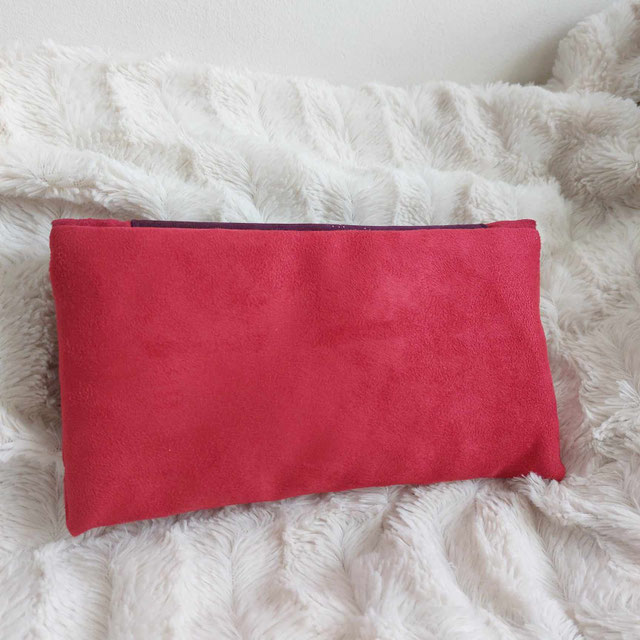 Belle petite pochette pouvant accueillir votre chéquier, cartes et argent liquide ainsi ou vos lunettes. Pratique et esthétique avec son bel imprimé de velours figurant une charmante chatte entourée d'un magnifique arbre, de papillon, de fleurs, de champignon. Inscription " le paisible jardin des fées", pour encore plus de rêverie. Suédine douce au touché velouté rouge grenat et velours noir avec brume framboise. Intérieur en tissu matelassé noir, fermé par un bouton pression aimanté.