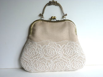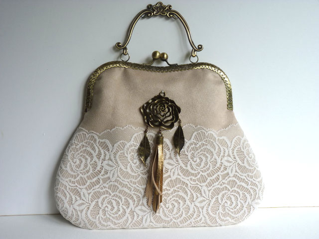 Belle pochette au magnifique fermoir avec anse ciselé (métal couleur bronze) au charme rétro chic, très romantique, idéal pour sublimer vos tenues lors d'un mariage ou d'une soirée chic et