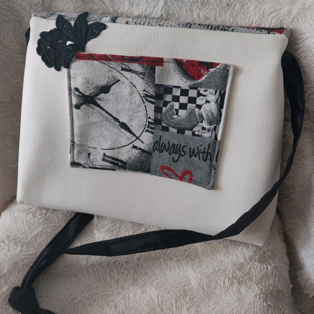L'avant du sac est en simili cuir noir, tandis que l'arrière est blanc, pour garder l'esprit damier de l'échiquier.
