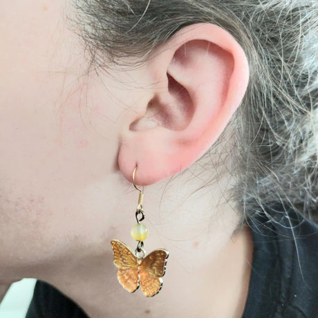 Boucles d'oreilles papillon orange et agates faites main l' Arche de Jessica