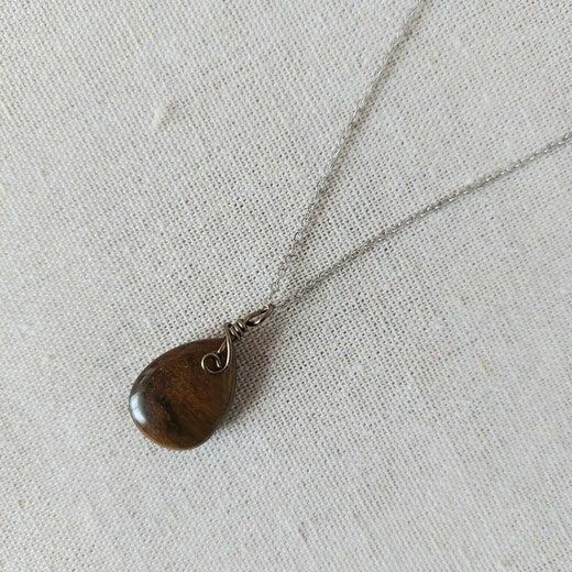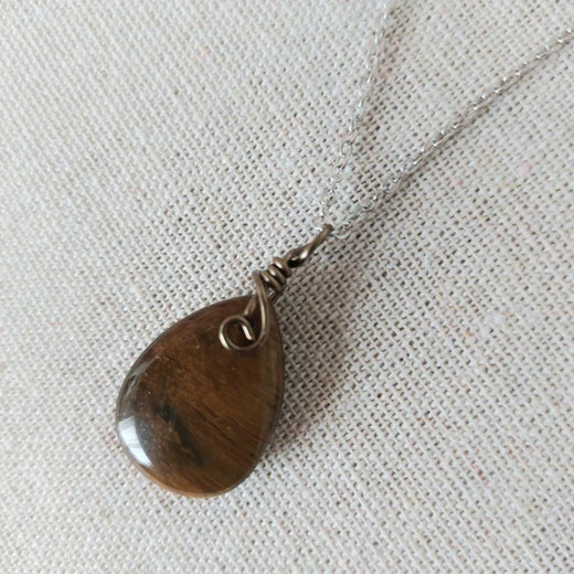 Collier en acier inoxydable portant une magnifique facettée ( pierre de 2,5 cm de hauteur) Relier à la chaîne grâce à du fil de cuivre au revêtement gris argentée que j'ai torsadé.