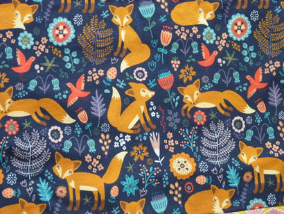 tout avec son oiseau, conçu dans du velours corail à pois gaufré et du velours rose pâle. magnifique Tissu jersey représentant une forêt peuplée de renard , d'oiseaux. Velours bleu , tissu en