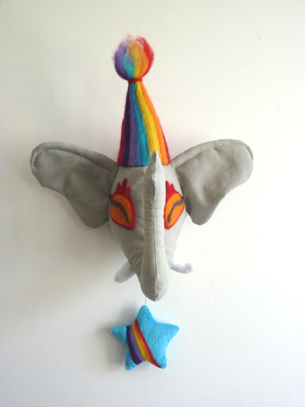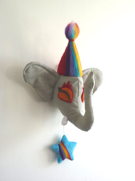 Décoration chambre murale trophée éléphant cirque étoile arc en ciel faite main l' Arche de Jessica