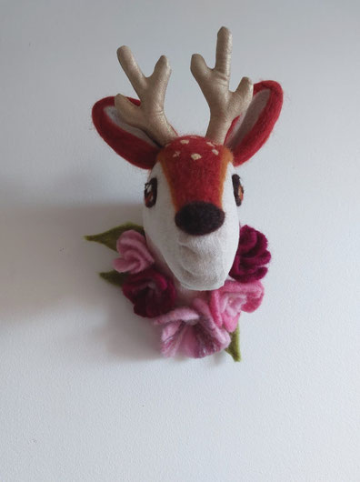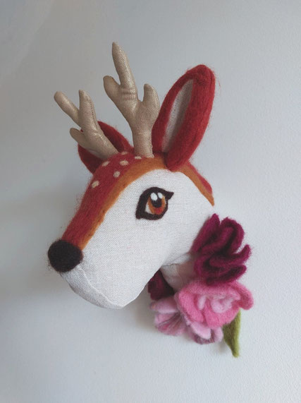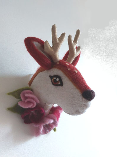 Trophée décoration chambre bébé biche fleurs feutrées fait main l'Arche de Jessica